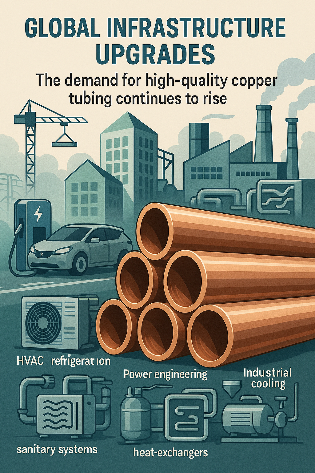Memandangkan infrastruktur global mengalami peningkatan besar-besaran-yang berasal dari penggantian sistem HVAC ke pembinaan bangunan yang cekap tenaga, penggunaan pemancar haba, penyejukan industri, dan pemecatan pengangkutan pengangkutan-permintaan untuk tiub tembaga berkualiti tinggi terus meningkat. Di HVAC, penyejukan, kejuruteraan kuasa, penukar haba, dan sistem sanitari, tiub tembaga kekal sebagai salah satu bahan yang paling dipercayai terima kasih kepada mereka yang sangat baik kekonduksian terma , Rintangan kakisan , kebolehbaburan , dan 100% Kitar Semula .