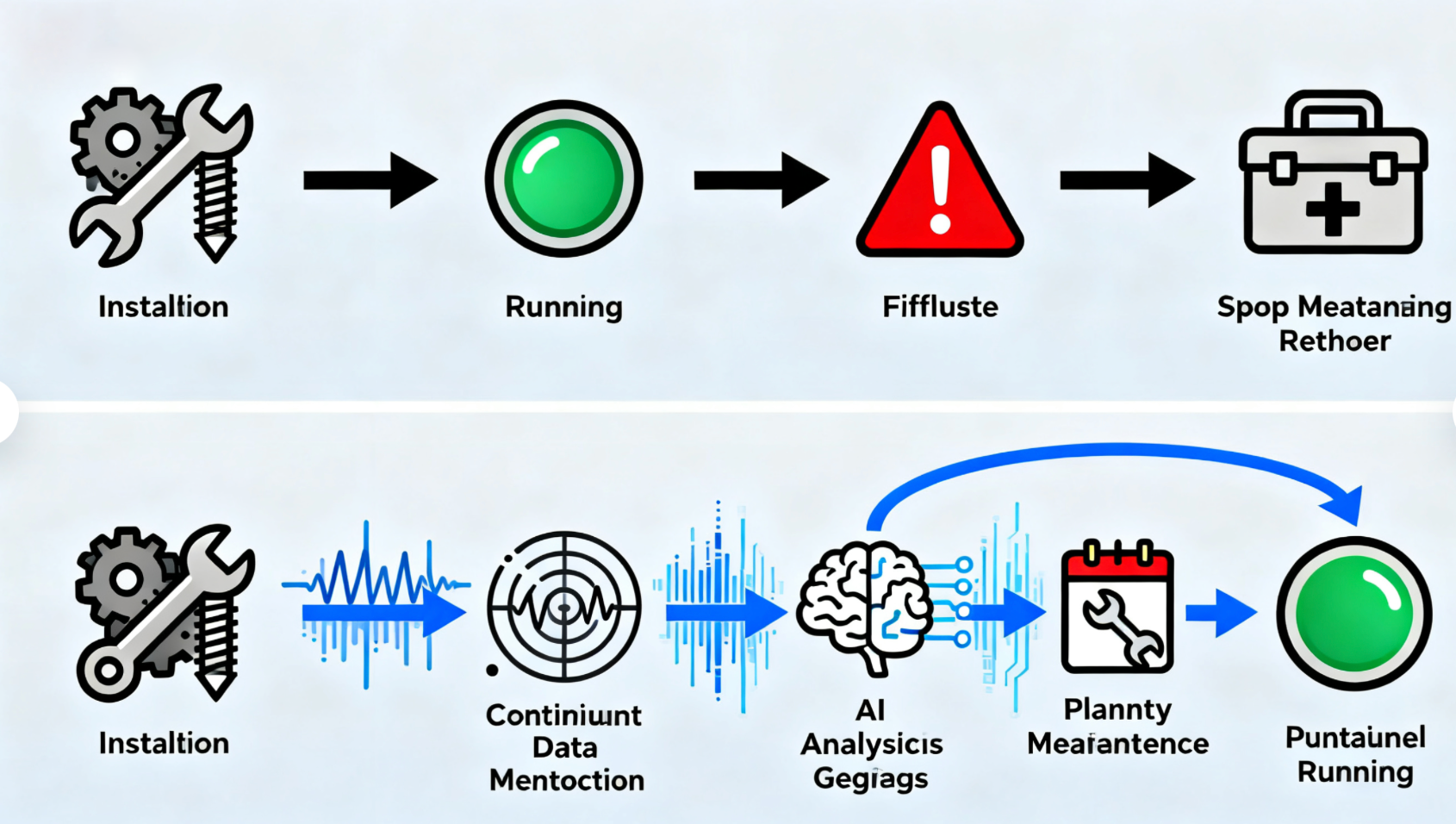 Kapsyen: Evolusi model penyelenggaraan: Dari tindak balas kegagalan pasif kepada intervensi ramalan berasaskan data yang proaktif, meningkatkan kebolehpercayaan sistem.