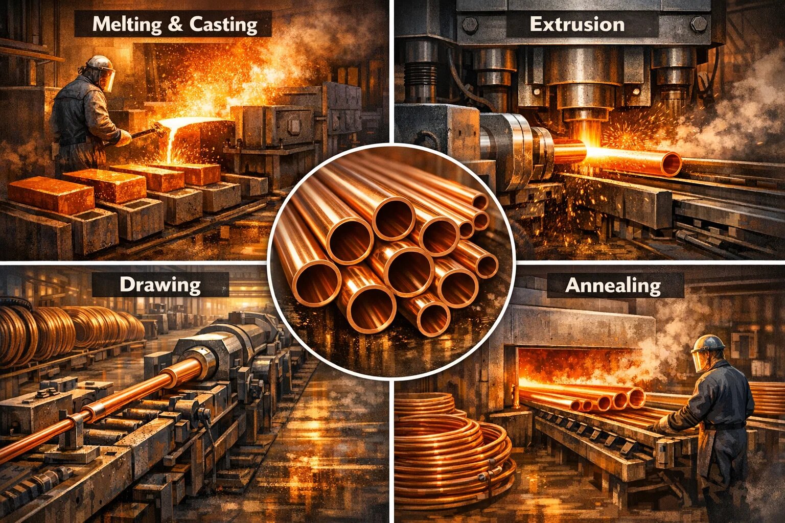 Berjalan ke kilang tiub tembaga terasa seperti memasuki dunia api dan ketepatan. Proses menukar bongkah logam berat menjadi tiub berongga yang nipis adalah satu kejayaan kejuruteraan. Mari pecahkannya kepada empat langkah mudah: