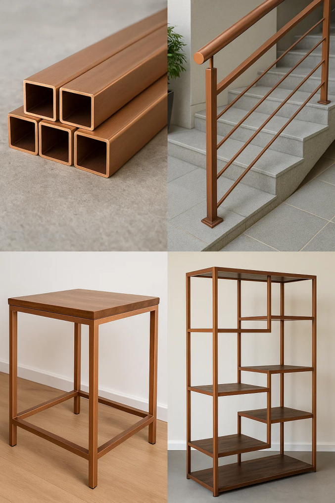 Dalam sesetengah kes, tiub persegi tembaga digabungkan dengan bahan lain seperti kaca atau kayu untuk membuat reka bentuk yang unik dan dinamik yang dimainkan dengan tekstur dan cahaya. Mereka boleh digunakan dalam kedua -dua tetapan moden, minimalis serta reka bentuk yang lebih tradisional, mempamerkan fleksibiliti mereka dalam menyesuaikan diri dengan pelbagai gaya.