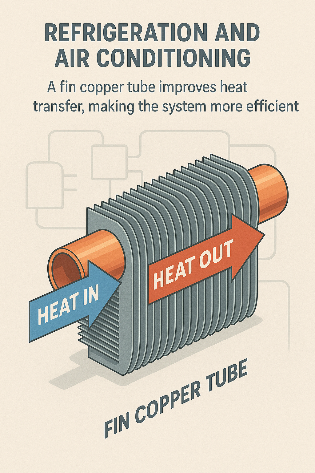 Dalam sistem penghawa dingin, Tiub Tembaga Fin digunakan secara meluas dalam gegelung penyejat dan pemeluwap. Penyejat menyerap haba dari udara di dalam bangunan, manakala pemeluwap membebaskan haba ke persekitaran luar. Penggunaan Tiub Tembaga Sirip dalam kedua-dua komponen ini meningkatkan kecekapan pemindahan haba keseluruhan, yang membawa kepada prestasi penyejukan yang lebih baik dan penggunaan tenaga yang lebih rendah.
